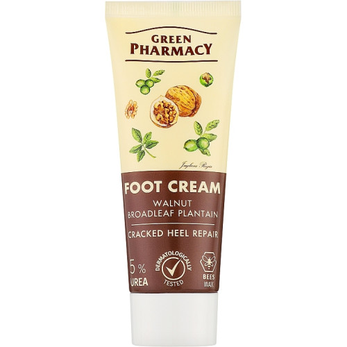 Foot cream against cracks on the feet from the Green Pharmacy brand is an effective remedy for minor injuries: cracks, abrasions, chafing. It contains natural ingredients that gently care for the skin and promote the regeneration process. Beeswax, walnut oil, plantain extract, tea tree essential oil in combination with 10% urea, which actively moisturizes and softens the skin, contribute to the fact that it becomes much softer, and the healing process is much faster. Foot cream against cracked feet - Green Pharmacy - an effective remedy that helps keep the skin of the feet healthy and elastic.