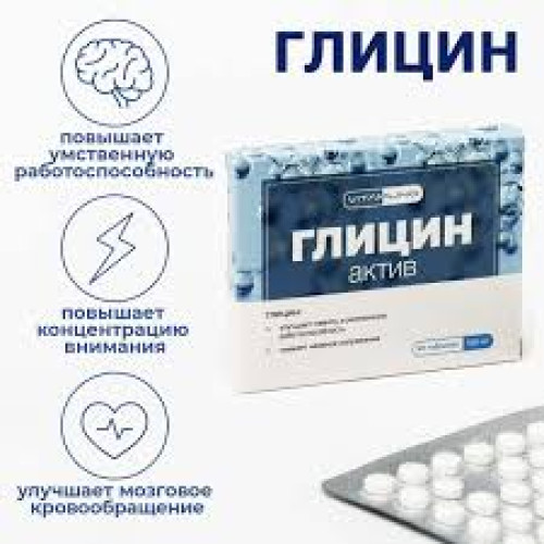 Glycine is a metabolic regulator, normalizes and activates protective inhibition processes in the central nervous system, reduces psycho-emotional stress, and increases mental performance. Glycine has glycine- and GABA-ergic, alpha1-adrenergic blocking, antioxidant, and antitoxic effects; regulates the activity of glutamate (NMDA) receptors, due to which the drug can: